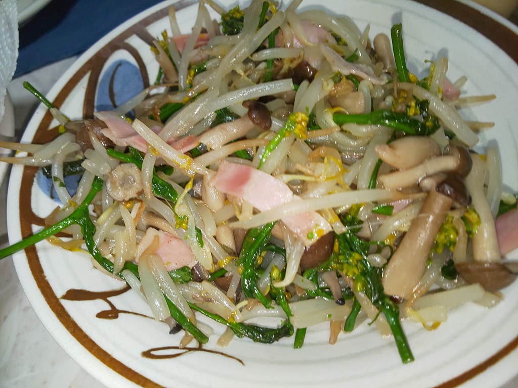 新芯菜とハムの炒め物