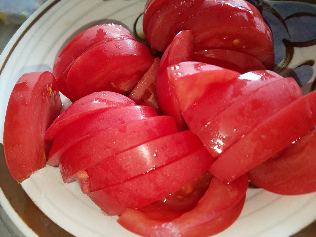 美味しいトマトを貰って昼食に食べた